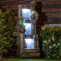 180cm Log Wall Falls and Bowls Cascading Planter Water Feature With Lights By Ambienté