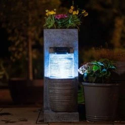 91cm Stone Effect Ripple Wall and Bowl Cascading Planter Water Feature With Lights By Ambienté