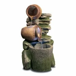 H68cm Cottage Honey Pots & Barrel Water Feature with Lights by Ambienté