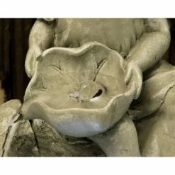 H36cm Two Gnomes on Leaves Water Feature with Lights | Indoor/Outdoor Use – by Ambienté