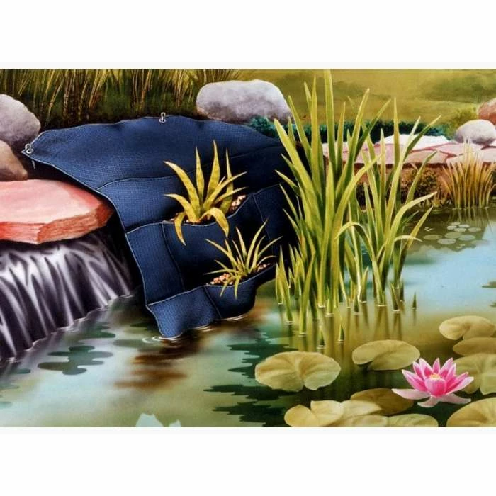 Using this overgrowing mat, you will make a splendid connection between the pond edge and the water of the pond. The mat contains many indentations in which marsh plants can be put. In this way you will realise a naturally grown overgrown connection between the water surface and the pond edge.