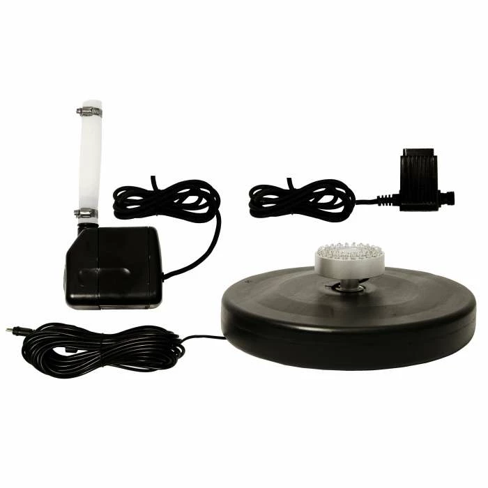 Economical design suitable for backyard ponds. Comes complete with a 48 LED colour changing light (red, blue, clear).
