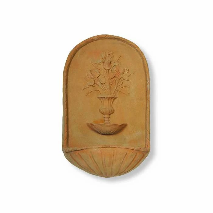 An easy way to add the sound of running water to your garden or conservatory. This delicate wall fountain looks like terracotta but is in fact made from fibreglass and resin, with an authentic terracotta finish.