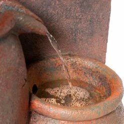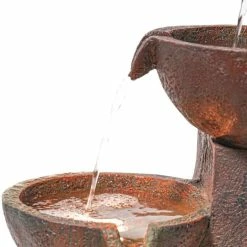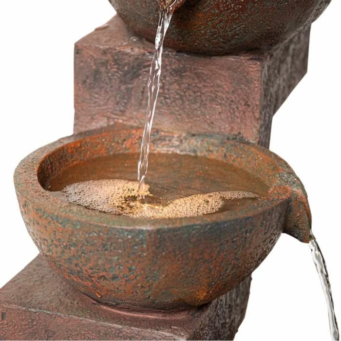 Add a sense of tranquillity to your garden with this cascading series of bowls and jars, painted in a finish that gives it both a rustic vibe, and the feel of existing for decades. This water feature is made from polyresin, which is both frost and UV resistant, ensuring that it will last for years outside in the elements. LED lights illuminate each receptacle, glowing bright from the bottom of each bowl and shining through the cascading water. This water feature is truly eye catching, and will add charm and appeal to any garden or patio.