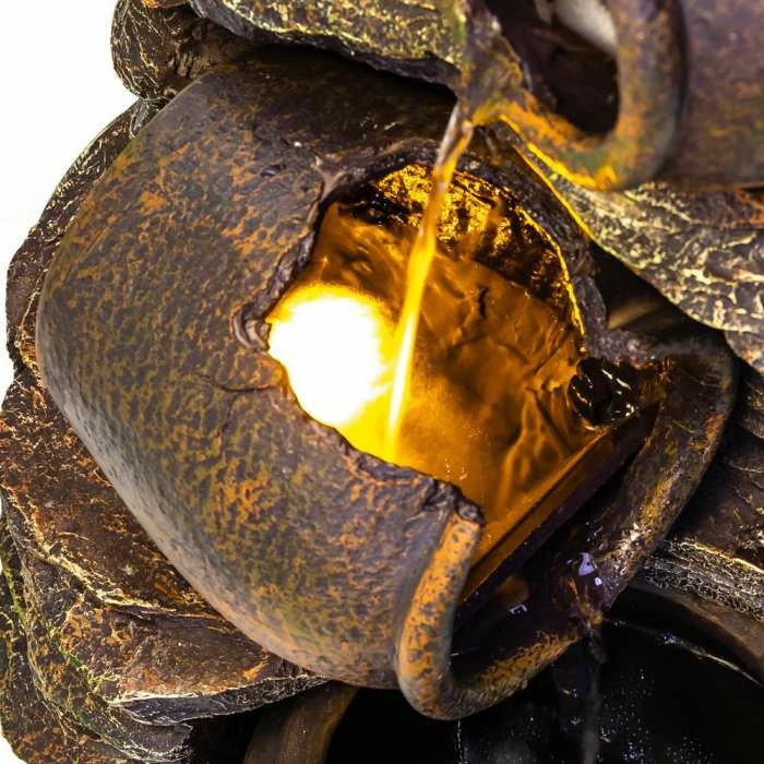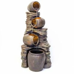 This beautiful stone-effect fountain, featuring four cracked oil jars with lights, has been exquisitely crafted and designed to look and feel almost exactly like real, natural jars on a stone-like base. Enjoy relaxing to the sound of water gently trickling through this feature, adding a real sense of tranquillity to any setting in which it is placed. It is a tasteful water feature with a rustic appearance, guaranteed to make a fantastic addition to your garden or home.