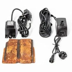 This feature is entirely self-contained and includes the pump. The reservoir and pump can be reached by an access panel at the back of the feature.