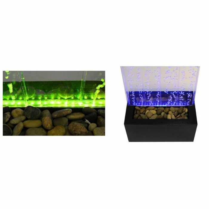 This striking modern water feature with black metal powder coated frame will look great in any modern setting. Bubbles lit by LED lights continuously rise from the base of the feature up through the water contained in the acrylic walls creating a mesmerising effect that illuminates the dark.