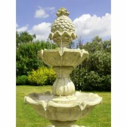 The water circulates from a reservoir hidden inside the feature and is pumped out of the pineapple on the top of the fountain, before gently spilling down through the final tier, ready to be pumped back up to start the cycle all over again.