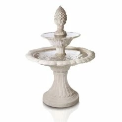 The fountain is in a classical style, featuring an elegant acorn finial. These have been components of classical art since Roman times, and are said to symbolise potential and strength. This beautiful fountain is fantastically detailed from top to bottom, and the lines are delicate and intricate.