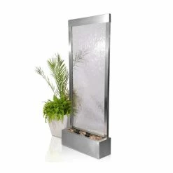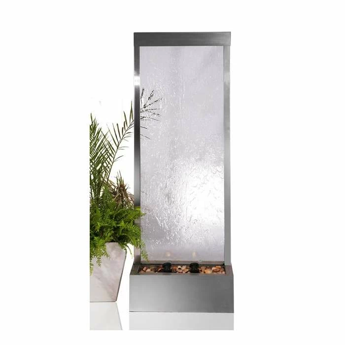 H173cm Silver Falls Stainless Steel Water Wall with Lights | Indoor/Outdoor Use by Ambienté