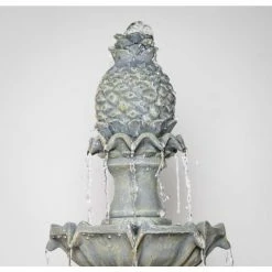 The water circulates from a reservoir hidden inside the feature and is pumped out of the pineapple on the top of the fountain, before gently spilling down through the final tier, ready to be pumped back up to start the cycle all over again.