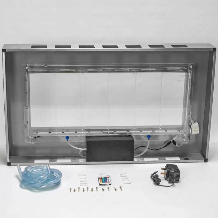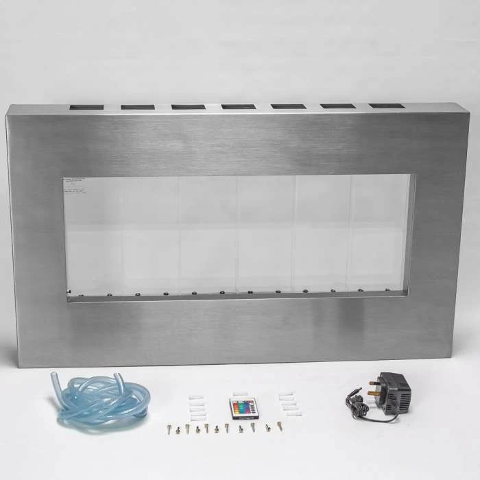 This striking wall mounted water feature with brushed stainless steel frame will look great in any modern setting.