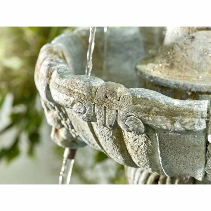 Create a calm and serene space in your garden with this stunning piece of stone effect art. The Lioness Fountain is a traditional water feature that has been uniquely designed to look and feel like it has been crafted out of weathered stone. Water flows down three tiers and pools in the fourth, where it’s pumped back up into the top again. Decorated with sculpted lioness heads, this fountain exudes elegance and vintage charm, and evokes a sense of peacefulness in the soothing sounds of trickling water. This water feature is sure to transform your garden, and become a focal point or centrepiece of any outdoor space, big or small.