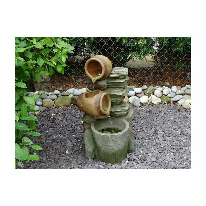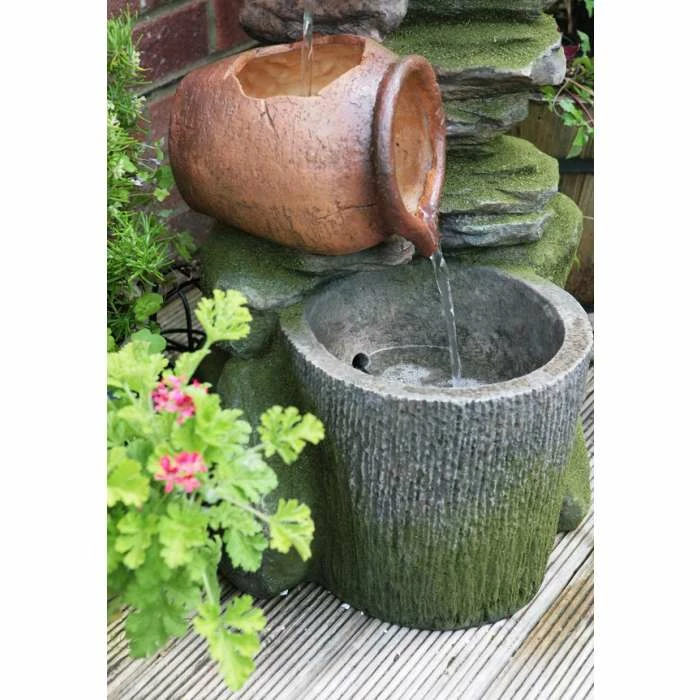 H68cm Cottage Honey Pots & Barrel Water Feature with Lights by Ambienté