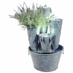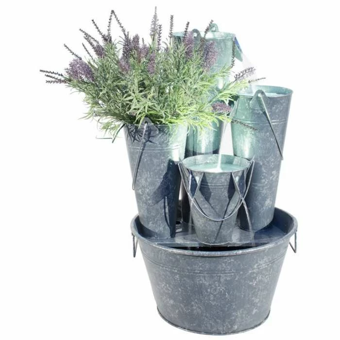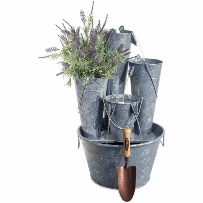 H70cm Borelli 3-Tier Bucket Cascading Zinc Water Feature Planter with Lights – Ambienté