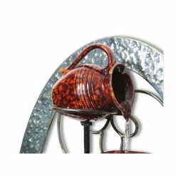 Add a sense of tranquillity to your garden with this elegant water feature. This product will create a relaxing ambience in your garden as the water gently cascades out of the oil jar and down into the cups below, descending in steps and producing a soothing, trickling sound in the process. It features beautifully crafted metalwork that depicts a floral theme within its frame and striking tortoise shell ceramic jars that add a crisp finish. The traditional design suits any outdoor setting and is wonderful for mounting on any garden or house walls, where it will complement your floral arrangements or sculptured garden landscapes.