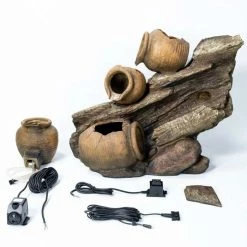 Featuring four oil jars, this beautiful water feature has been wonderfully crafted out of high quality polyresin to create this lovely and realistic product. Enjoy relaxing to the sound of water gently cascading through the four rustic oil jars perched atop each other, adding a real sense of tranquillity to any setting in which it is placed. With its authentic appearance, this water feature is sure to make a fantastic addition to your garden or home.